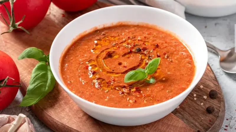 Summer in Andalusia brings hot weather, ideal for cooling down with a bowl of this chilled vegetable soup. The most classic version today includes tomatoes, cucumbers, garlic, and olive oil, along with a little toasted breadcrumbs for thickening.