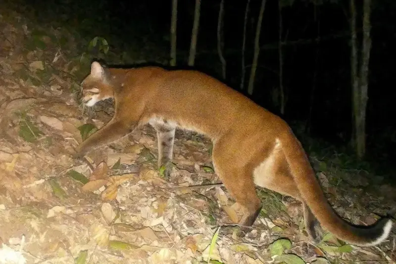 The program was implemented with 120 camera traps, installed at 60 points systematically distributed across the characteristic habitats of Pu Hoat.