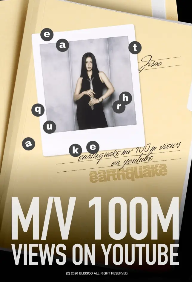 According to her agency BLISSOO, the music video for ‘earthquake,’ the title track from Jisoo’s solo mini album ‘AMORTAGE,’ officially crossed the 100 million mark as of February 7. To celebrate the achievement, the agency shared a commemorative image with fans, marking the moment alongside messages of gratitude.