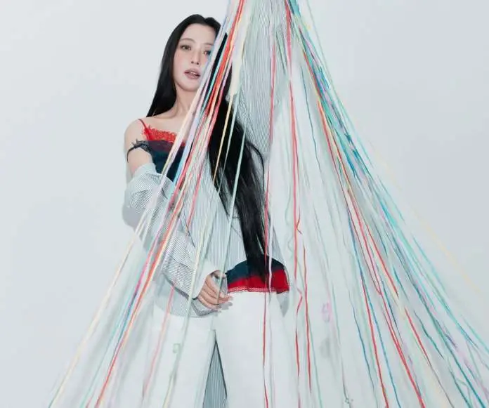 Another image highlights a contrasting mood. Dressed in a red knit top, Kim delivers a more subdued, elegant atmosphere, emphasizing refined facial features and a quiet confidence that has become synonymous with her public image. Rather than relying on dramatic styling or heavy accessories, the shoot leans into simplicity a choice that only amplifies her visual impact.